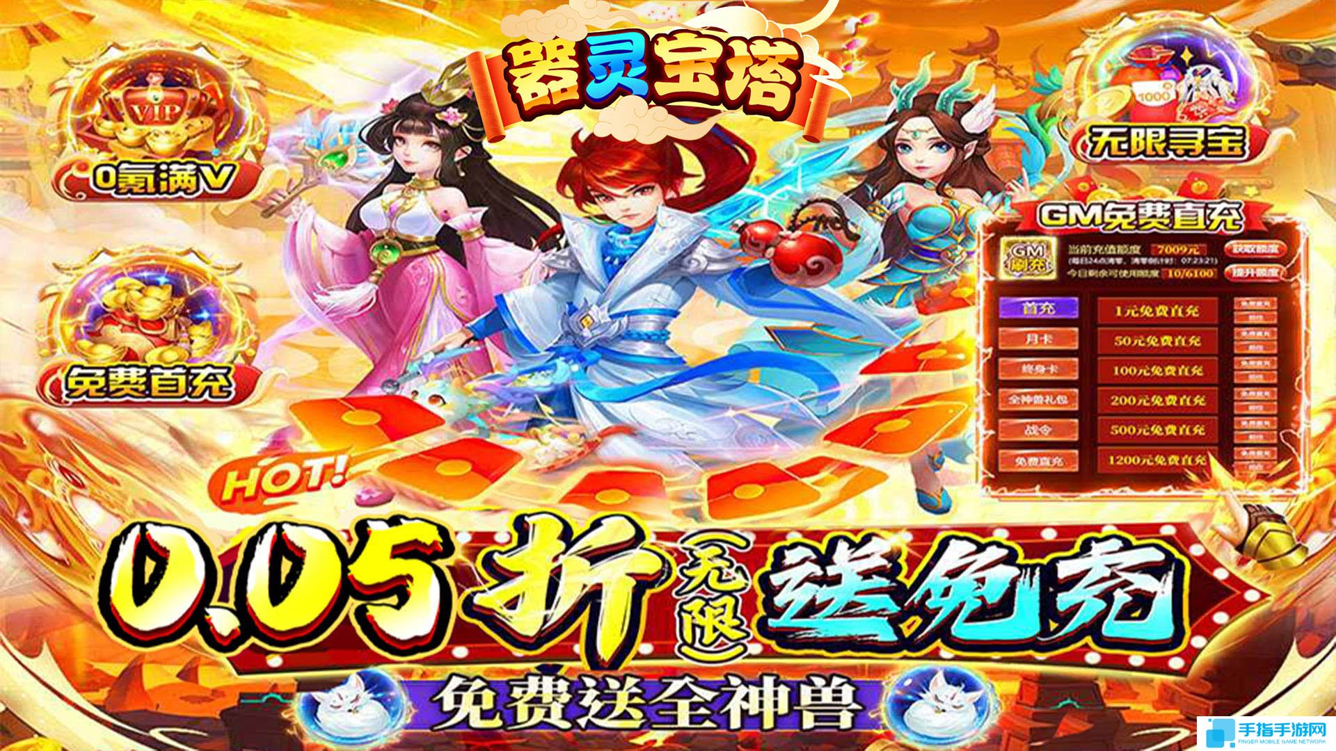 超人气西游回合题材手游《器灵宝塔》带着超级福利来袭了,绝对是你以往没有体验过的快乐。开局满V,8888888元宝,888万银两,海量材料,限定称号称号*1。特色GM刷充,上线送超强打金工具,打怪爆免单券,不花一分钱也能当大佬,全神兽礼包,一包烟钱即可获得满神兽。你将生处妖魔纵横之乱世,开启热血的诛妖之路,参与征伐纣王的旷世之战。感受人、仙、魔三界魅力,斗天地镇众妖,开启属于你的封神传说。