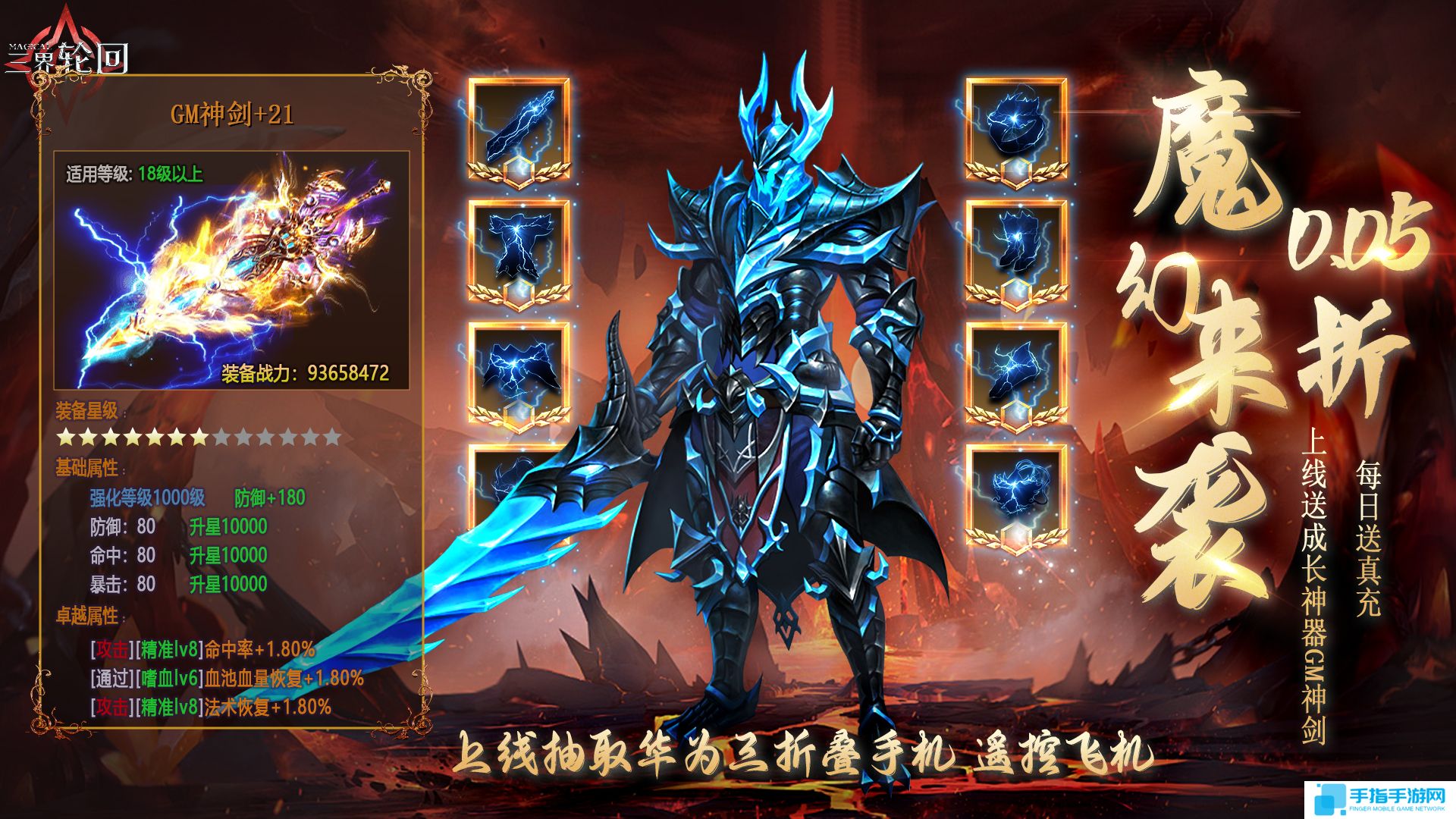 《三界轮回(0.05折送GM神器)》带你体验0.05折超低折扣超高福利的放置手游,感受100%原汁原味暗黑魔幻新大陆! 魔神归来,海量重磅福利免费送!打怪掉真充卡,不花一分钱也能当大佬!10余个精美地图,百余种特色魔物,多种强力Boss,每一次战斗,都是一场酣畅淋漓的炫酷体验!