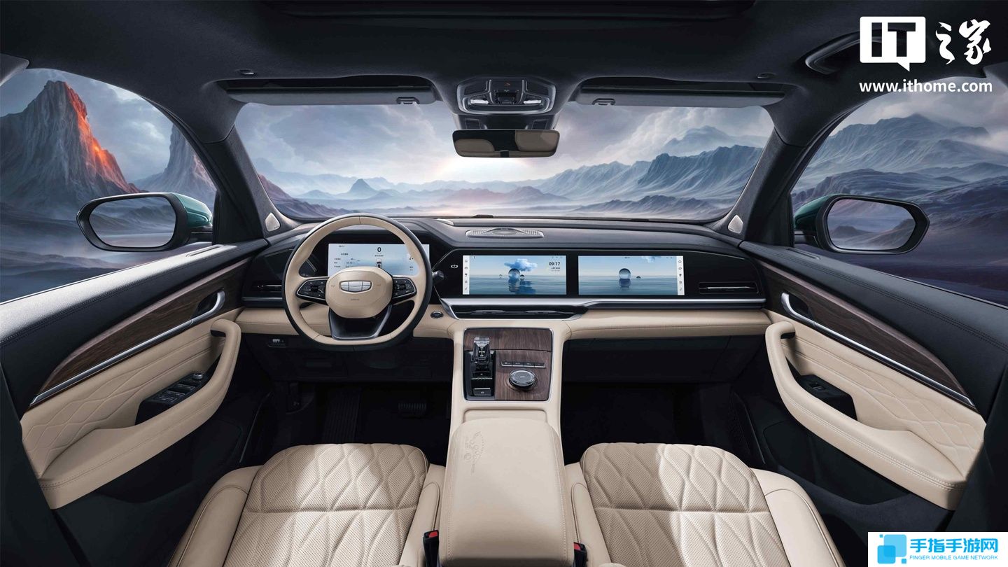 2025 款星越 L・东方曜今朝版车内继续配备 12.3 英寸全液晶仪表,中控和副驾位置则配备了 12.3 英寸双联屏。副仪表台采用了最新的设计布局,取消了中央空调出风口下方的实体按键,换装了水晶材质的电子换挡杆和功能旋钮。此外,车辆还新增了一列实体物理按键,并使用木纹饰板装饰,同时增加了前方储物格。
