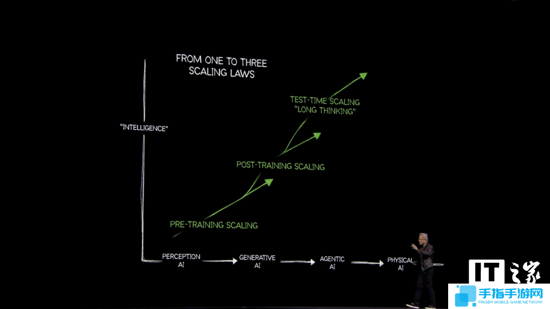 老黄认为,AI 领域 Scaling Law 的故事还没有讲完,而且仍在加速,我们对算力的需求并没有减弱。