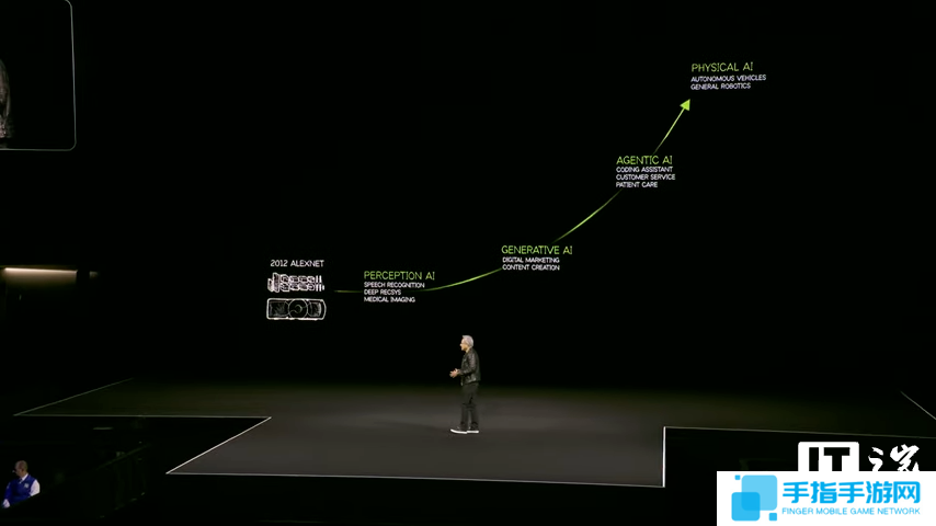 现在我们处于生成式 AI(Generative AI)阶段,根据路线图,我们将迈向一个 Agentic AI 时代,随后便是 Physical AI —— 机器人登场的时候。
