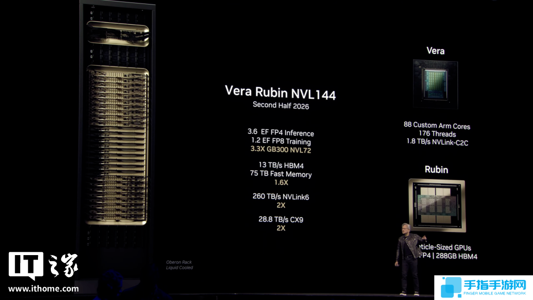 Vera Rubin NVL144 将于 2026 年下半年推出,拥有 75TB 带宽 13TB/s 的 HBM4 内存,带来 3.3 倍于上面介绍的 GB300 NVL72 的性能。