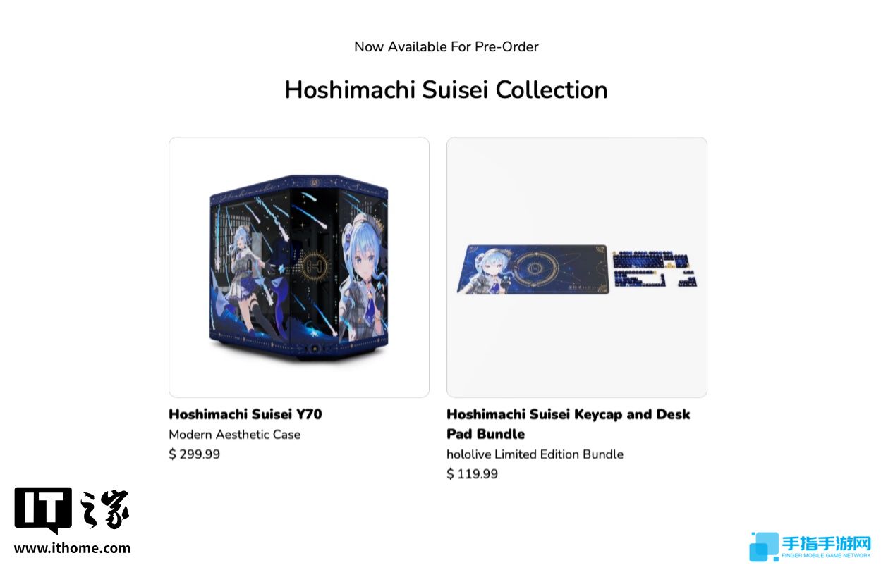 本站 3 月 20 日消息,海外游戏 PC 整机厂商 iBUYPOWER 旗下硬件品牌 HYTE,今日在其官网上推出了以虚拟偶像团体“hololive”旗下 VTuber(虚拟直播主)“星街彗星”为主题的全新产品线。此次联名共推出机箱及键帽、桌垫套装两款产品。