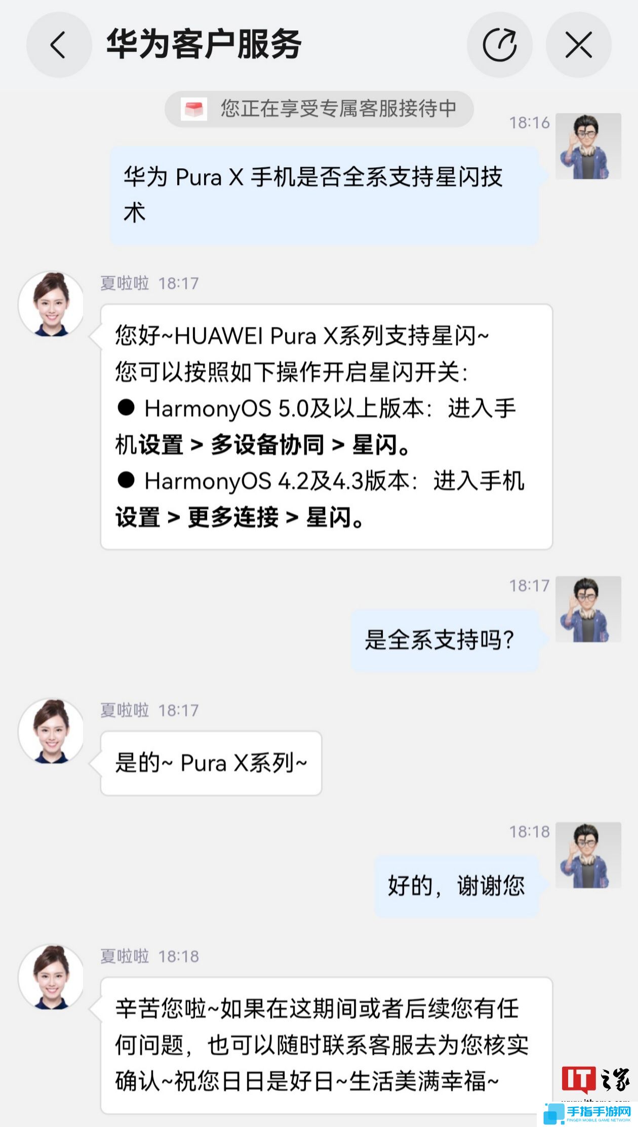 本站从华为客户服务获悉,华为 Pura X 阔折叠手机全系支持星闪技术。